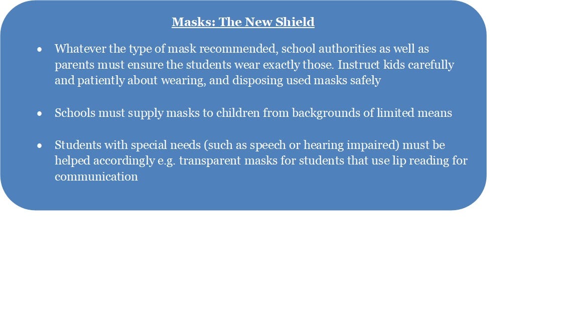 All appropriate safety measures must be implemented on school grounds and in students’ personal lives as schools begin to reopen.